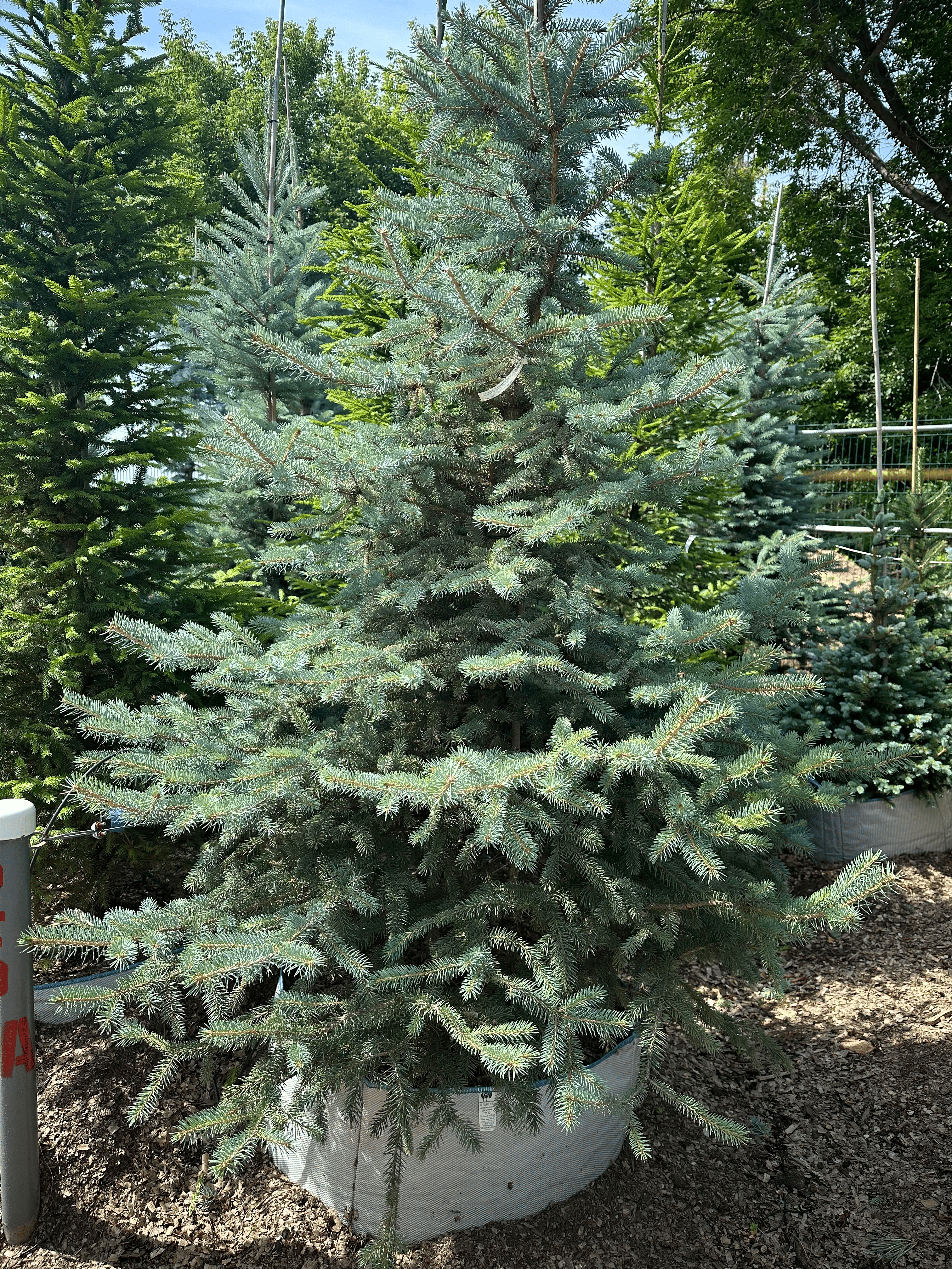 Это дерево привлекает внимание своей симметричной кроной в форме пирамиды, которая низко опущена, а также голубовато-зелёной или голубой хвоей.