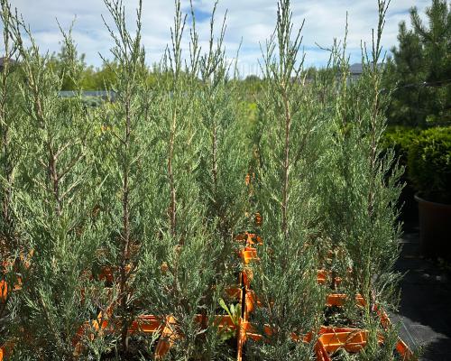 Узкая колонновидная форма кроны и голубовато-серый цвет хвои делают этот сорт очень привлекательным.