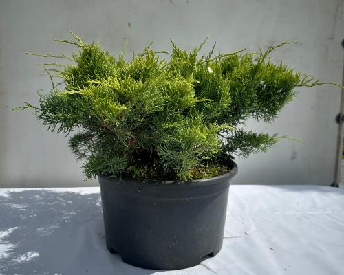 «Золотая весна» — это вечнозелёный хвойный кустарник с красивой раскидистой кроной, у которого кончики побегов имеют жёлтый оттенок. Высота растения достигает 50 см, а ширина — 150 см. Хвоя у этого кустарника чешуйчато-игольчатая, зелёная. Молодые побеги и кончики имеют золотисто-жёлтый цвет. Длина хвоинок составляет от 0,5 до 0,7 см. Цветы и плоды: на фоне хвои красиво выделяются многочисленные тёмно-синие, почти чёрные шаровидные шишкоягоды. Их диаметр составляет до 6 мм.