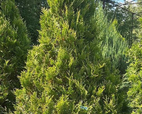 Кустарник привлекает внимание своей конической густой кроной и ярко-зелёной хвоей с золотисто-жёлтыми кончиками.