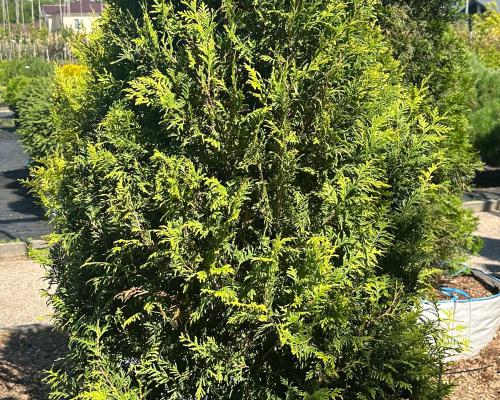 Хвоя имеет чешуйчатую структуру. Молодые побеги окрашены в ярко-жёлтый цвет с бронзовым оттенком, который со временем становится зелёным, а затем желтовато-зелёным. Зимой цвет хвои практически не меняется, но иногда появляются лёгкие бронзовые оттенки.