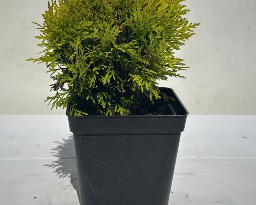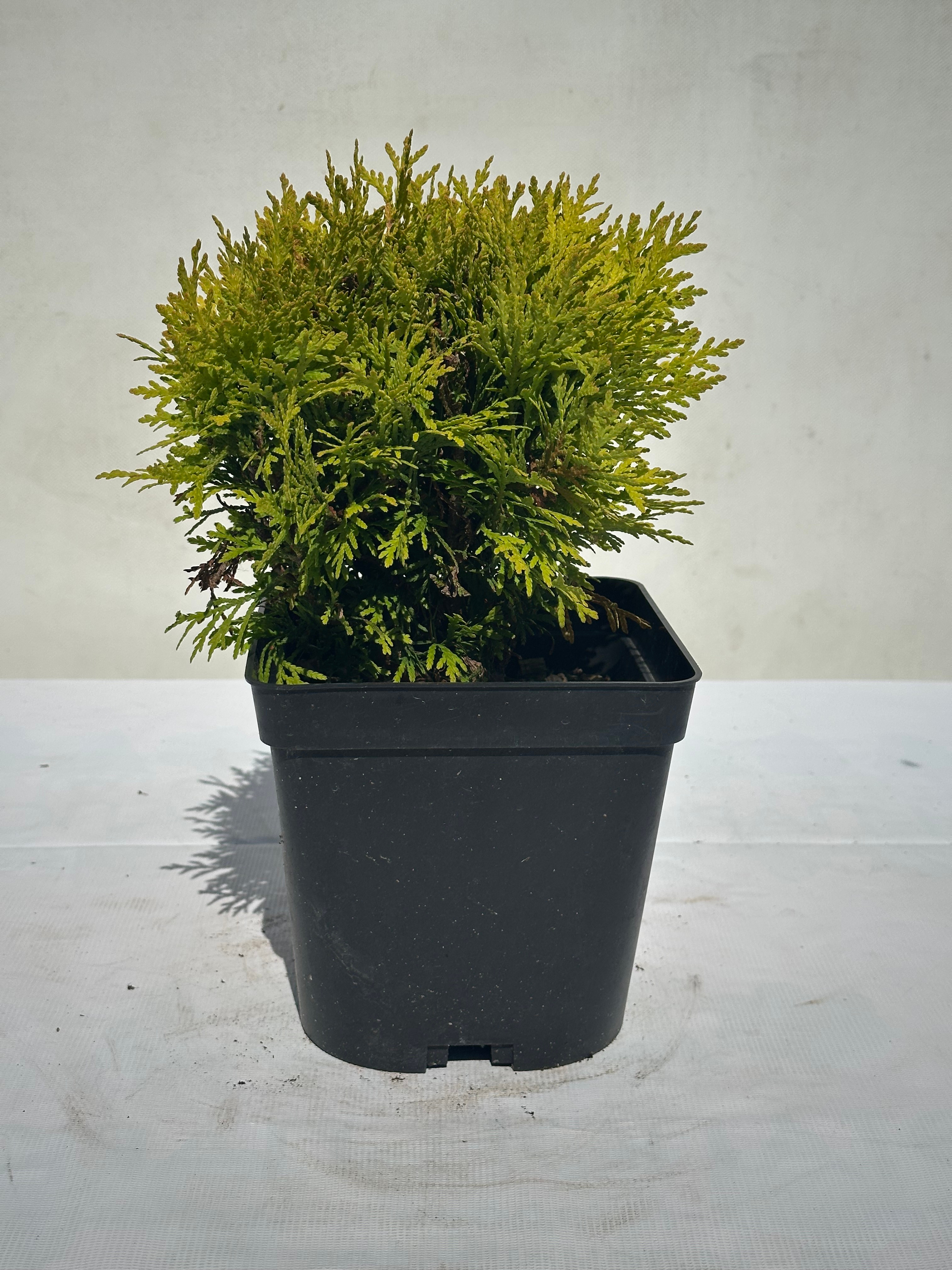 Кустарник с медленным ростом, имеющий шаровидную форму и достигающий в высоту примерно 0,8 м. Крона у него плотная и низко опущенная. Хвоя имеет вид чешуек и бывает ярко-золотисто-жёлтого или зеленовато-жёлтого цвета, при этом она блестящая. Зимой хвоя становится бронзового оттенка, а весной снова приобретает ярко-жёлтый цвет.