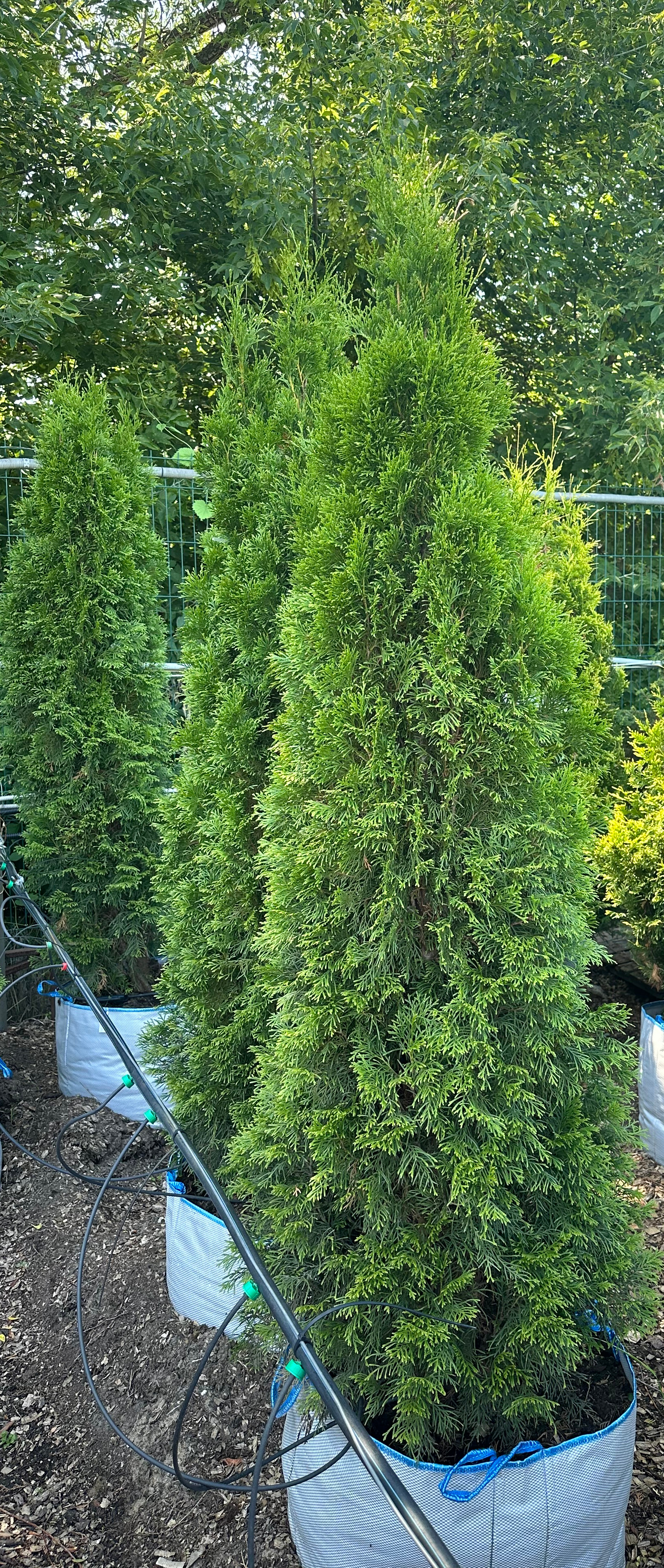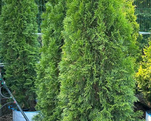 Туя «Смарагд» привлекает внимание своей стройной конусовидной кроной и яркой зелёной хвоей.