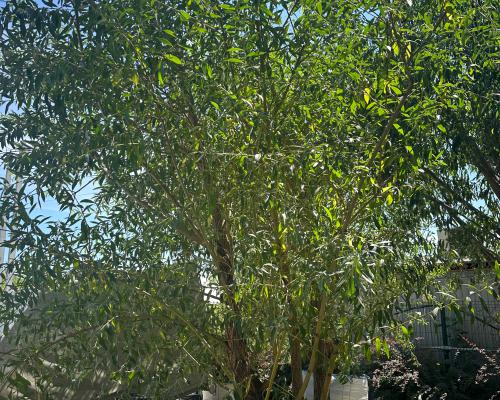 Это дерево или большой кустарник, который может достигать высоты от 7 до 10 метров, а в некоторых случаях — до 15 метров. Его крона имеет яйцевидную или овальную форму. Побеги окрашены в жёлто-красный или оранжево-красный цвет, который особенно ярко проявляется в зимнее время. Листья растения серо-зелёные. Крона взрослых деревьев густо покрыта листвой.