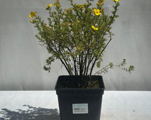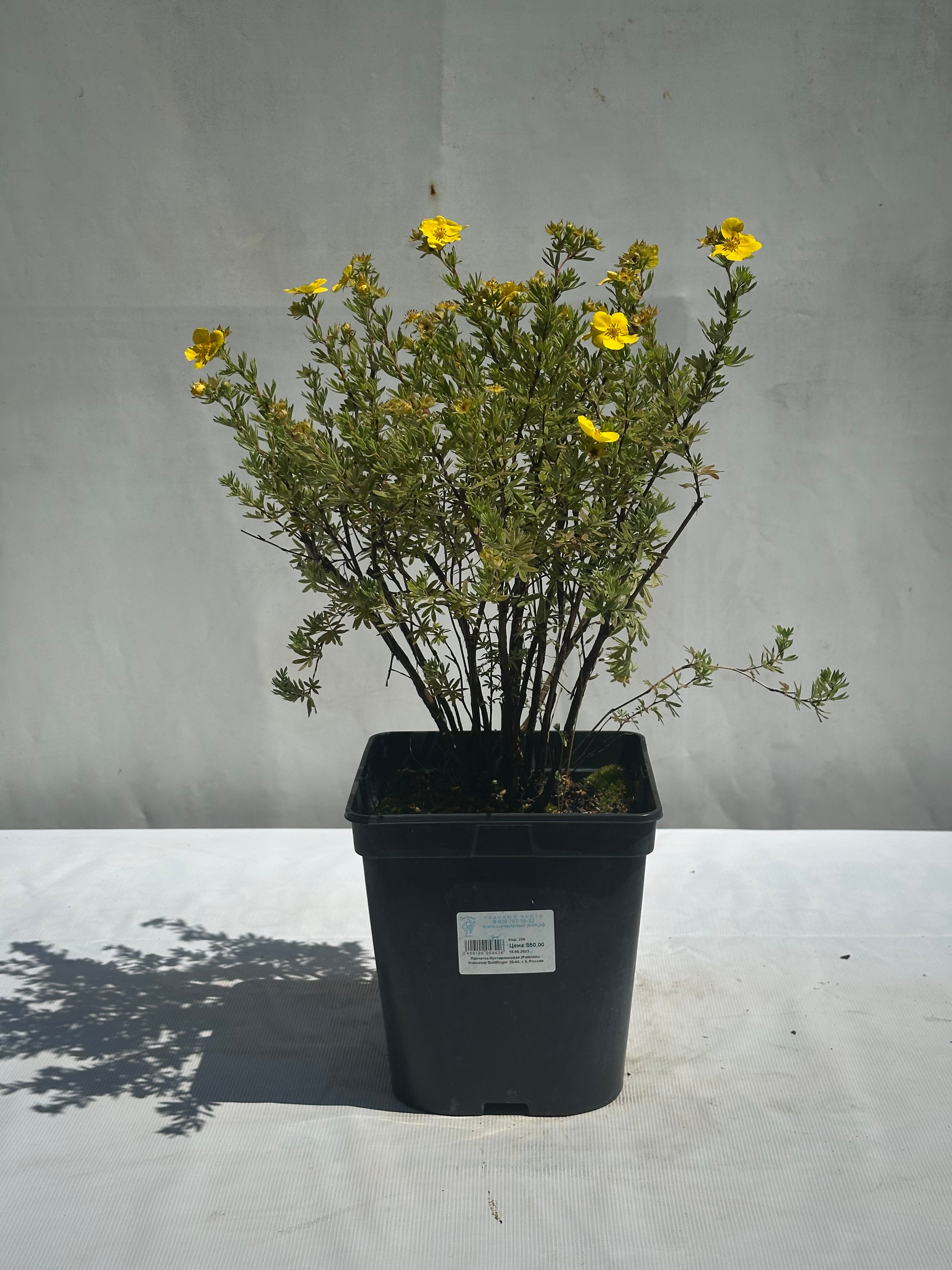 Лапчатка кустарниковая «Голдфингер» привлекает внимание своей плотной кроной, образованной вертикальными побегами. Её тёмно-зелёная листва и ярко-жёлтые крупные цветки делают кустарник особенно привлекательным.