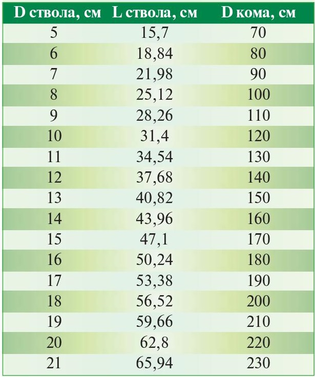 Садовый центр «Зеленый дом» сажает крупномеры более пяти лет. За это время специалисты Центра накопили достаточный опыт, чтобы сделать следующие рекомендации: При высадке больших деревьев размер кома должен очень четко соответствовать охвату ствола. Ком должен быть целым, без разломов и трещин.