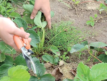 По словам агронома, если на участке нет признаков поражения листьев земляничным клещом, листья после сбора ягод удалять не рекомендуется. Ведь удаляя листья, мы отчуждаем огромное количество питательных веществ, которые растение могло бы использовать для закладки будущего урожая и подготовки к зиме. Важным приемом остается борьба с сорными растениями, так как в это время на них развивается тля, расселяясь затем на культурные растения.