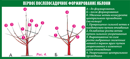 - подбор и правильное размещение в пространстве оптимального количества скелетных ветвей;