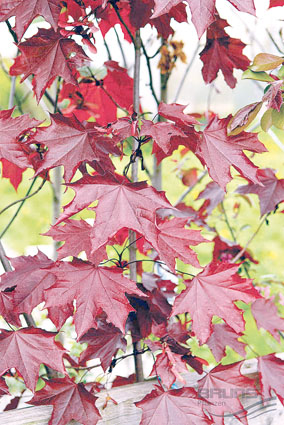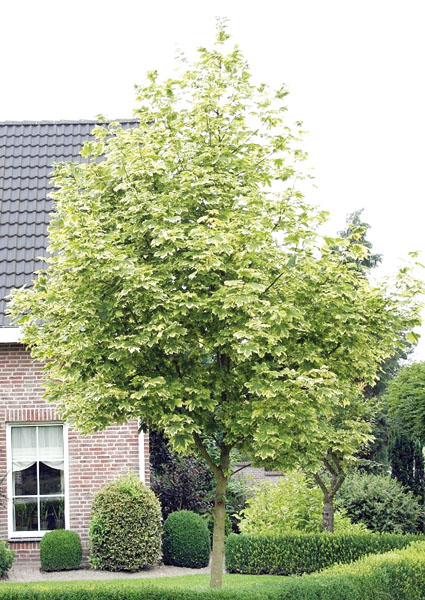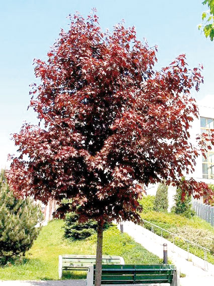 Даже для небольших садов можно подобрать эффектные декоративные деревья, которые никого не оставят равнодушным. Взять, к примеру, клен остролистный Royal Red. Высота его не превышает 10 – 12 м. В течение всего сезона можно только удивляться, каким разным может быть этот клен. Листья при распускании – ярко­красные, даже пурпурные, а цветки лимонного цвета окутывают желтым облаком все дерево. Летом листья приобретают темно­пурпурный оттенок. Осенью они тускнеют, постепенно переходя к оранжевым тонам. «Роял Рэд» подойдет для составления контрастных древесных композиций, хорош будет и в качестве акцента.