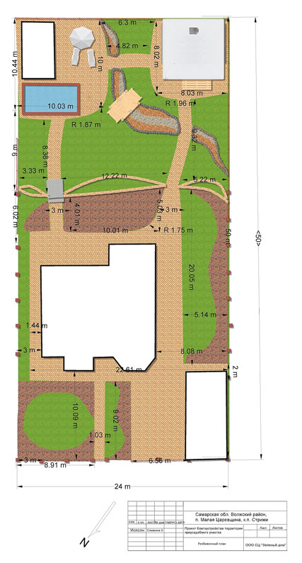 Разбивочный чертеж – размеры участка, строений, растений и других элементов ландшафтного проекта