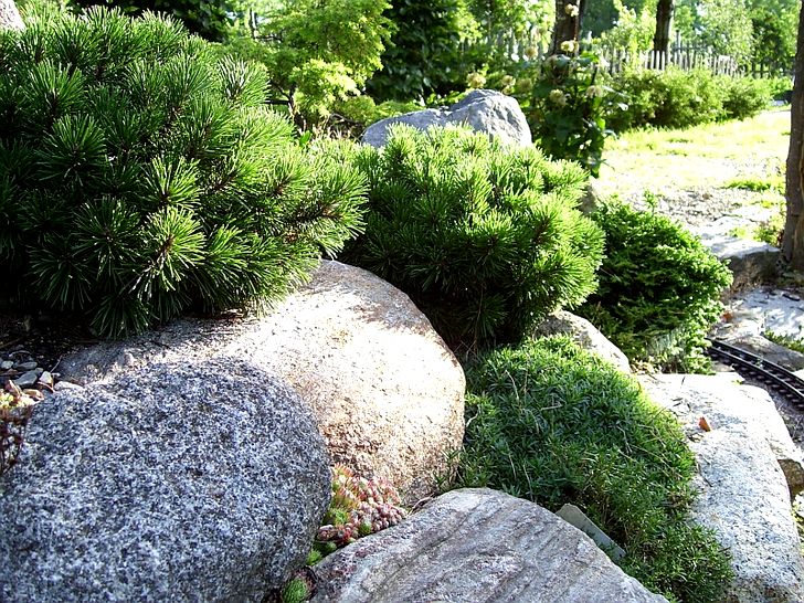 При создании японских садов, садов камней или композиций с камнями обычно используют горные сосны, которые могут быть аналогом живых камней.
