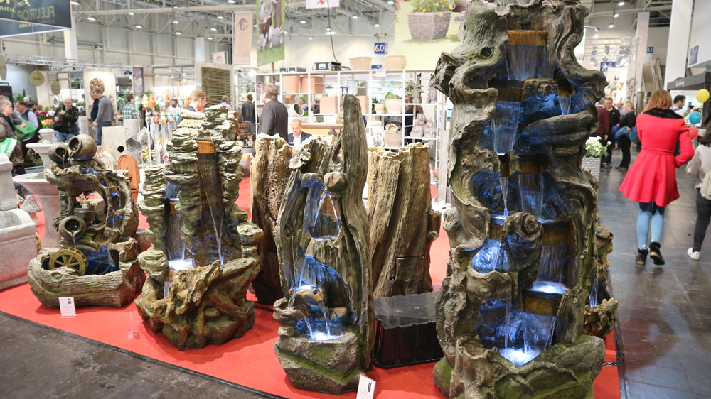 Производители предлагают огромный выбор сопутствующих товаров для украшения сада. Мне особенно понравились большие фонтаны и изделия из дерева.