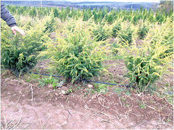 Тульский питомник «Гавриш», который специализируется на выращивании декоративного посадочного материала, удивил нас пополнением выбора прекрасных можжевельников (Моффит Блю и Голд Махандер, снимок 4). Вы непременно увидите их и в нашем «Зеленом доме». Представители хвойных здесь тоже качественные, но мы отбираем их небольшими. К сожалению, такие деревья в этом питомнике не пересаживают. Это очень досадно, так как число пересадок растения — довольно показательная величина. От того, сколько раз растение пересадили в питомнике, зависит живучесть его корневой системы и ее объем внутри кома. А этот показатель очень влияет на то, как скоро освоится оно в непривычном месте.