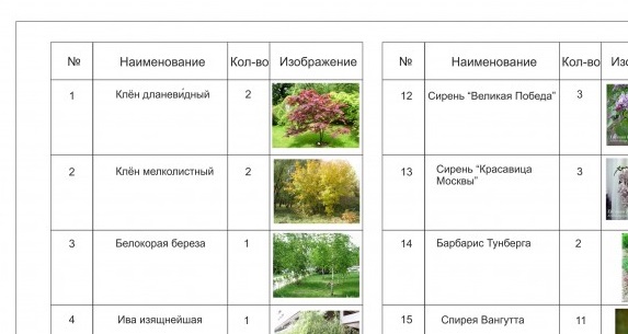 Ассортиментная ведомость растений |