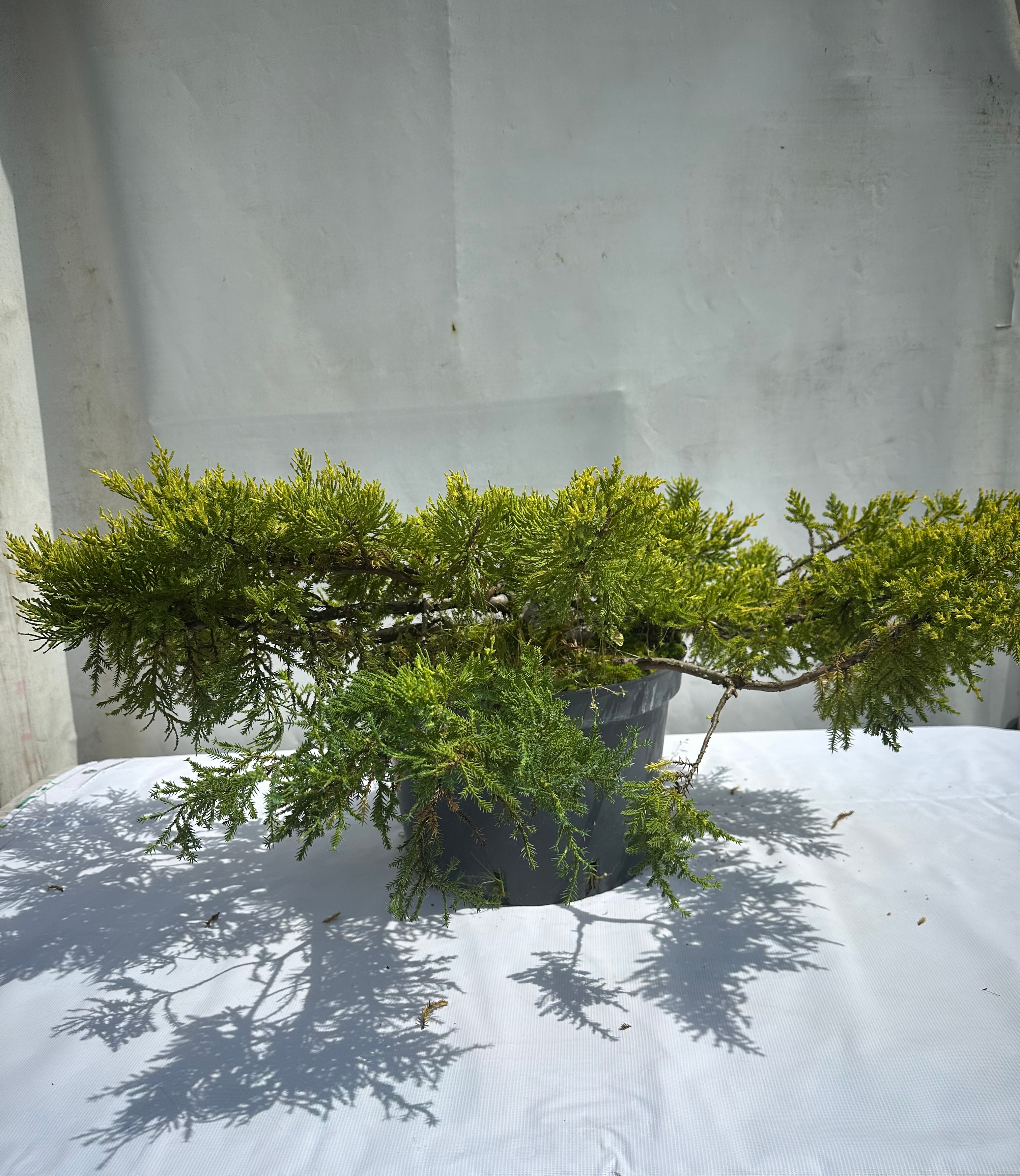 Гибридная форма. Juniperus chinensis и Juniperus sabina. Растёт медленно, крона широкая и плоская. Ветви расположены ярусами, горизонтально. Высота около 0,6 м, диаметр кроны около 1,5–2 м. Хвоя на концах побегов ярко-жёлтая, но по мере созревания становится сине-зелёной. Весенние приросты ярко-жёлтые, золотистые, красиво контрастируют с сине-зелёной прошлогодней хвоей. Очень декоративный вид.