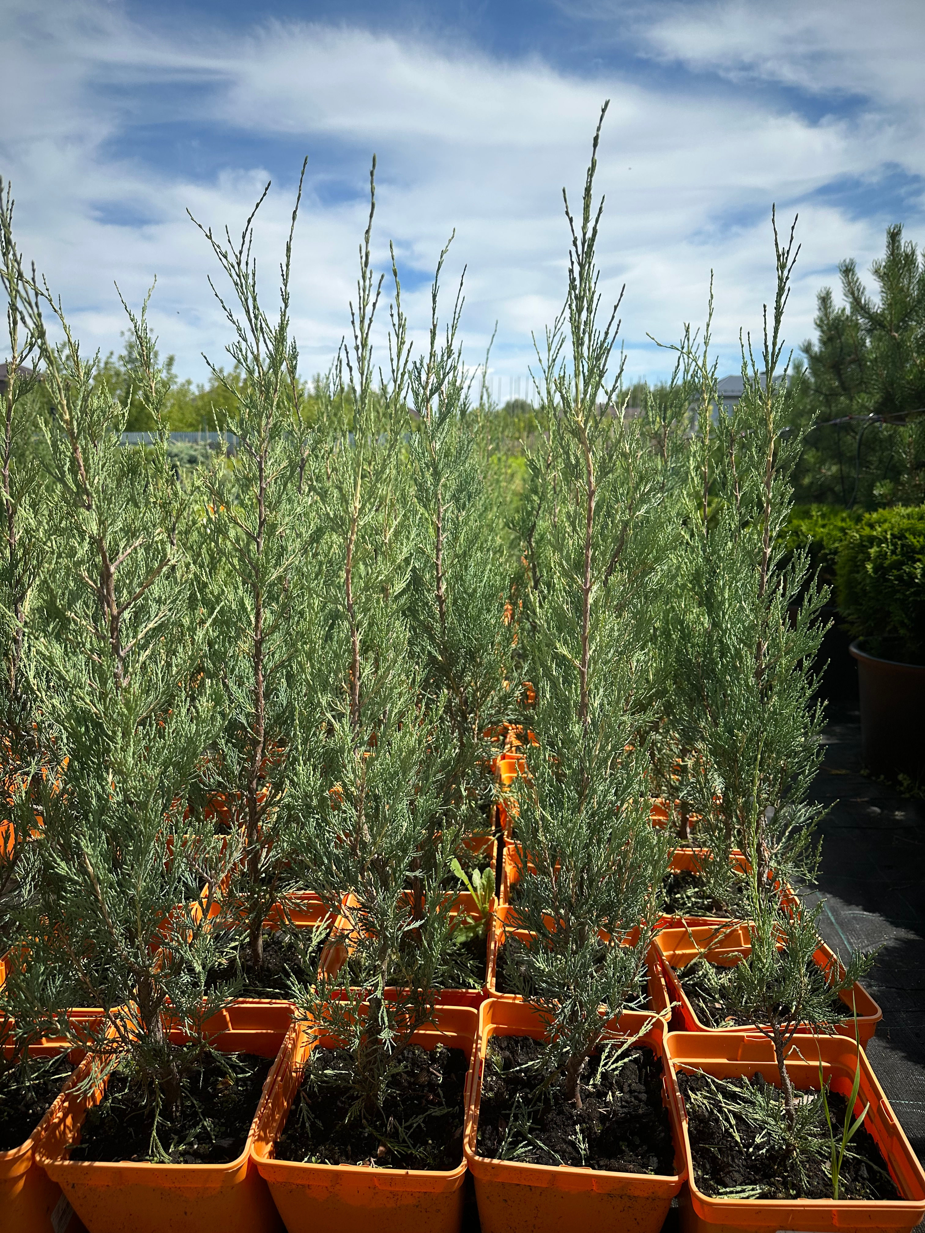 Узкая колонновидная форма кроны и голубовато-серый цвет хвои делают этот сорт очень привлекательным.