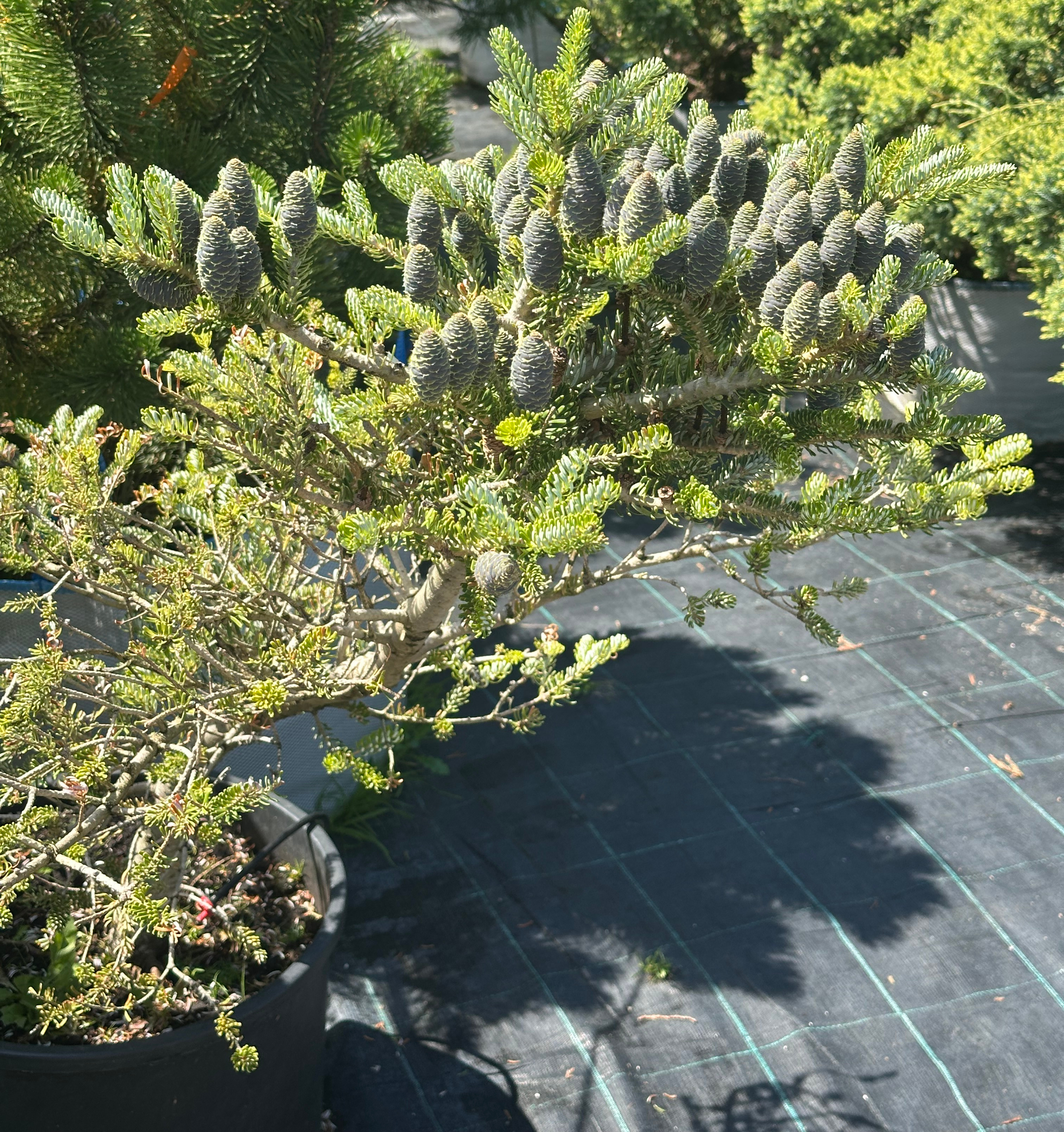 Пихта карликовая — это сорт, который отличается морозостойкостью и светолюбивостью, но при этом может расти и в тени. Это компактное дерево имеет коническую крону, которая расширяется кверху. Растёт оно медленно: к десяти годам достигает всего одного метра в высоту и пятидесяти сантиметров в ширину. Взрослое дерево редко вырастает выше двух-двух с половиной метров. Хвоя у пихты короткая, серо-голубая и блестящая. Иголки скручены, поэтому видна их нижняя сторона, которая имеет серебристо-белый цвет. Это придаёт растению характерный оттенок. На пихте образуются многочисленные шишки длиной от четырёх до семи сантиметров. Они появляются даже на молодых деревьях и расположены вертикально, как свечи. Шишки имеют оригинальный фиолетово-синий цвет, что делает пихту ещё более эффектной.