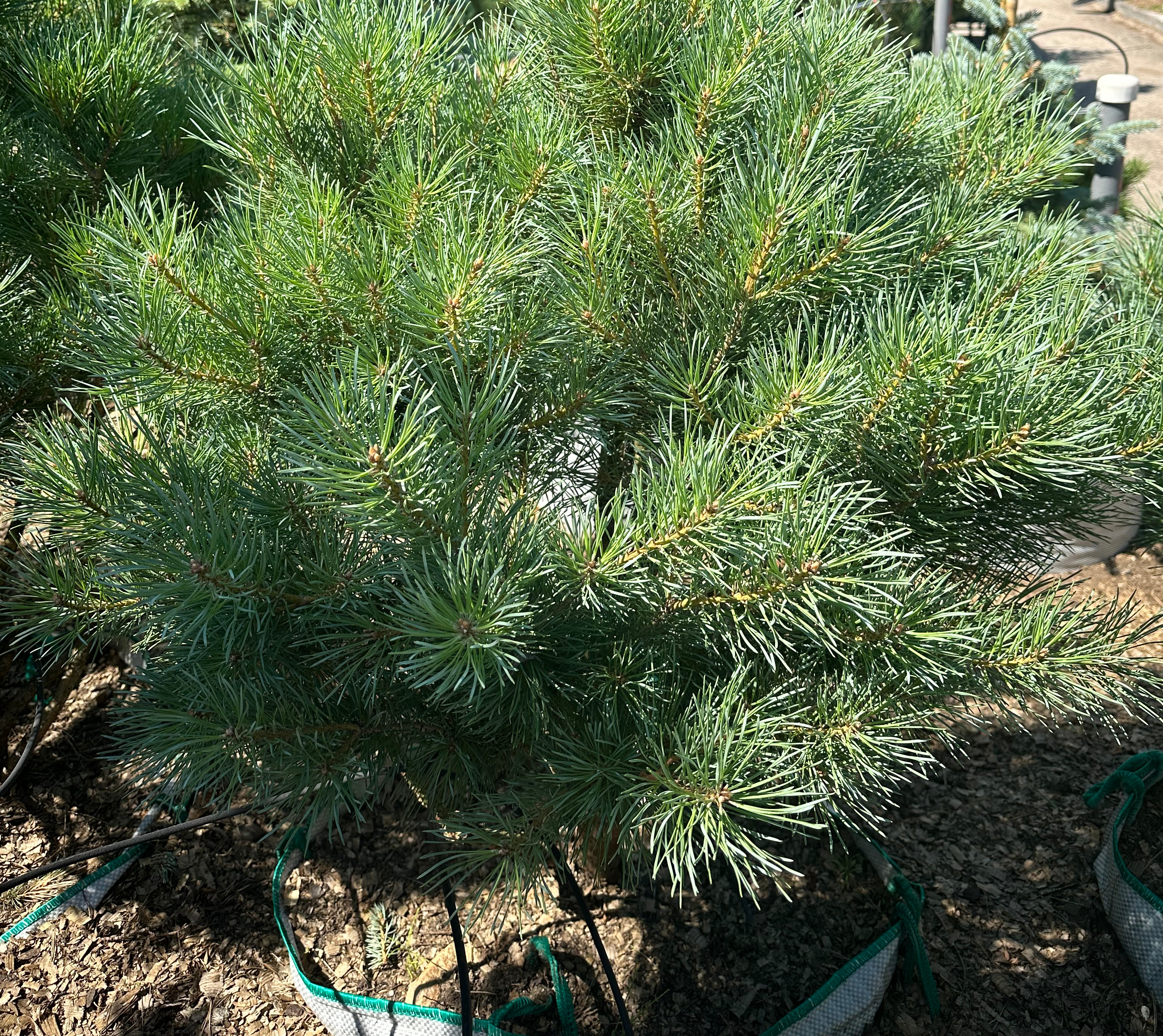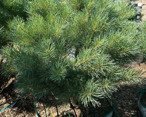 Карликовый сорт, который пользуется большой популярностью, имеет плотную округлую крону высотой и диаметром до 4–5 метров. Когда растение взрослеет, его крона становится более рыхлой и приобретает зонтиковидную форму, что делает её очень живописной. Побеги направлены вверх, а хвоя имеет голубовато-серый оттенок. Стоит отметить, что этот сорт менее зимостойкий, чем другие представители вида.