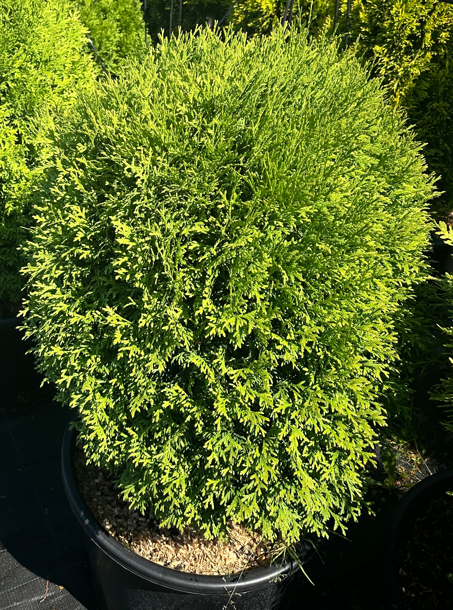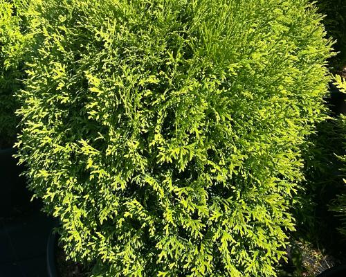 Кустарник привлекает внимание своей плотной сферической формой кроны и красивой ярко-зелёной хвоей.
