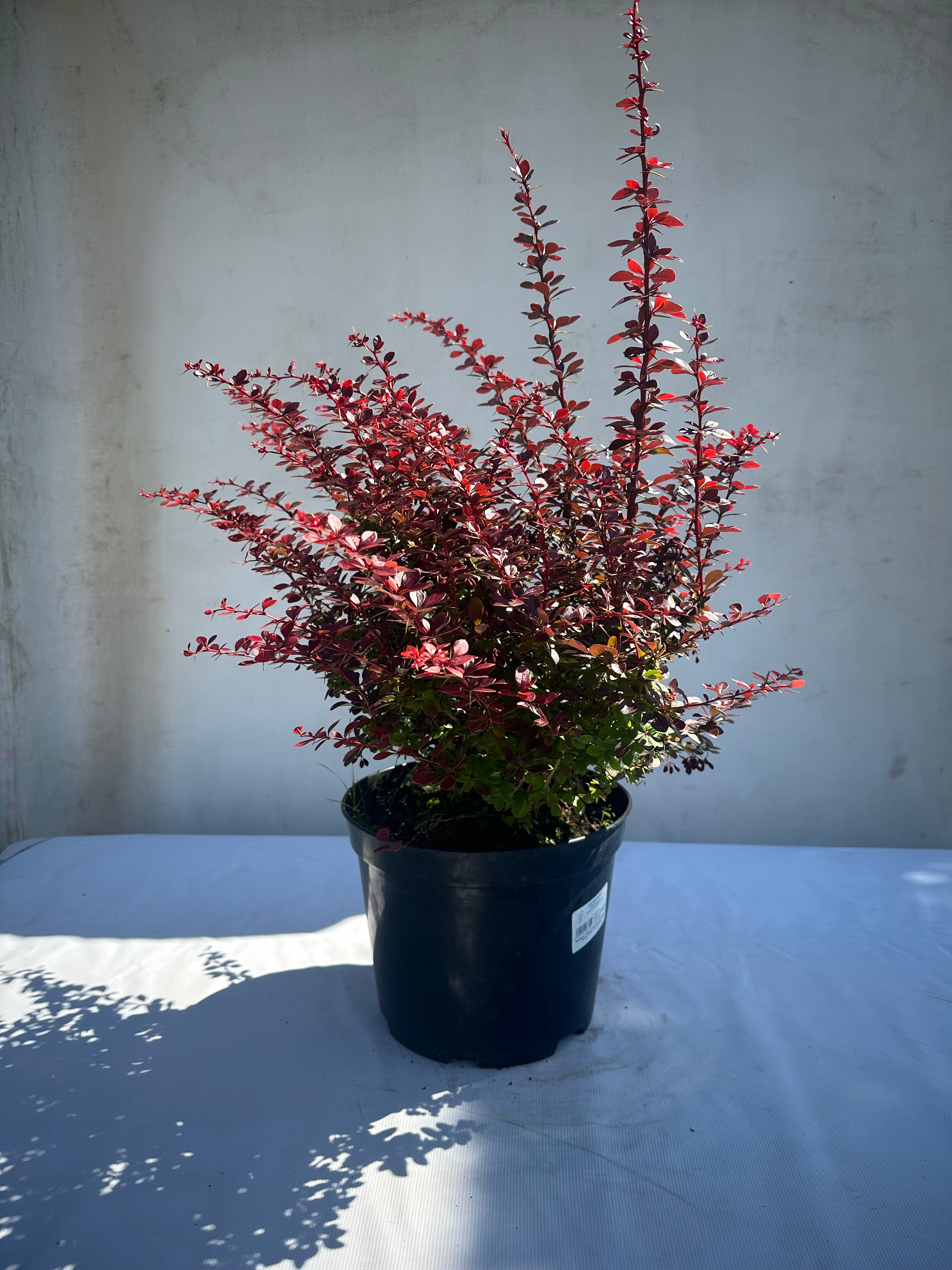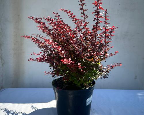 Барбарис Тунберга Кармен — это красивый кустарник с раскидистой кроной и дугообразными побегами красно-пурпурного цвета. Высота куста составляет 80–100 см. Растёт он медленно и достигает максимального размера через 8–10 лет. Листья у барбариса небольшие, их длина составляет 3–4 см. Они имеют красно-коричневый или кроваво-красный оттенок, который осенью становится ярко-красным. Цветки мелкие, жёлтые, собраны в соцветия по 3–5 штук. Плоды — ярко-красные продолговатые ягоды, которые можно употреблять в пищу. Барбарис Тунберга Кармен цветёт в мае. Он не требователен к почве и хорошо переносит зимние холода.