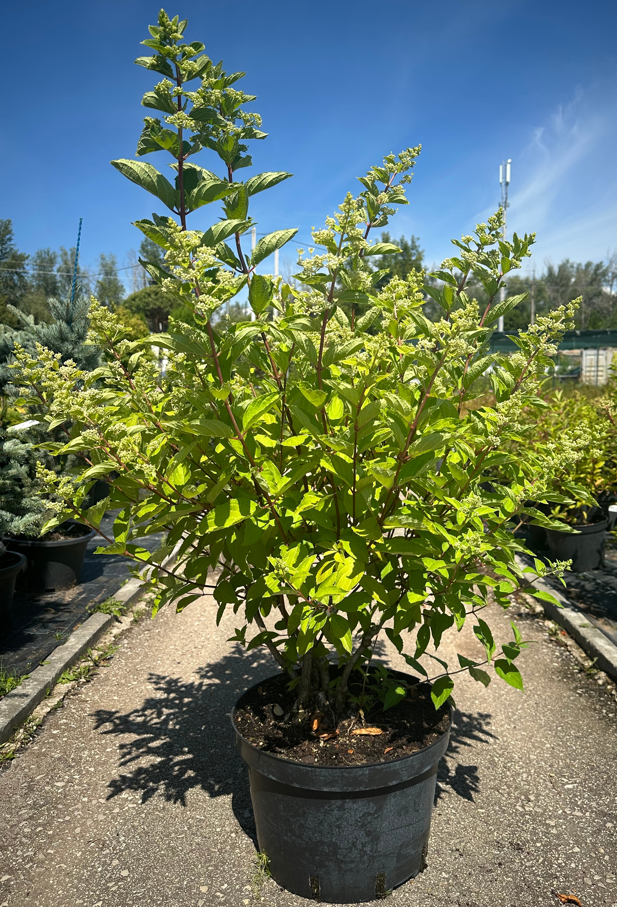 «Тардива» отличается поздним цветением и неплотными, довольно узкими коническими рыхлыми соцветиями из цветков обоих типов. Сначала цветки кремово-белые, затем слегка розовеют.