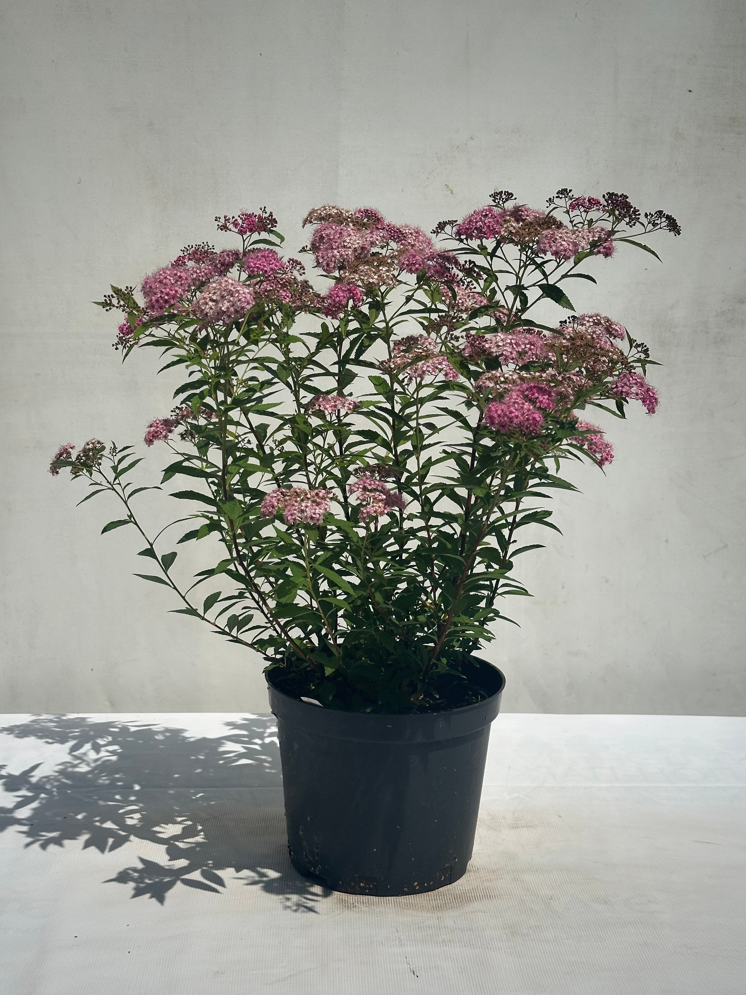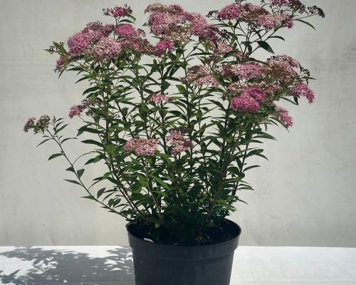 Невысокий кустарник, достигающий в высоту 60–80 см, с округлой и плотной кроной, которая может разрастаться до 1 м в диаметре. Его листья имеют тёмно-зелёный оттенок и узкую ланцетную форму. Цветки этого кустарника могут быть белыми, розовыми или лилово-красными. Они собраны в соцветия-щитки, которые могут быть как однотонными, так и разноцветными. Цветение происходит в июле-августе.